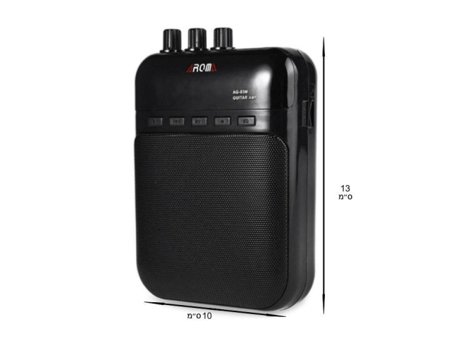 כניסת AUX מאפשרת חיבור של כל מגוון נגני המדייה/ MP3 עם יציאת אוזניות רגילה, לכבל מתאים לחצו כאן.אם תרצו לחבר מיקרופון כמובן שה – AG-03M מאפשר זאת עם כניסת המיקרופון שלו הנשלטת על ידי כפתור העוצמה.המגבר קטן, קל, נייד, ניתן לנשיאה על חגורה ועובד על סוללה נטענת מובנית המספקת זמן עבודה של כ 3.5 שעות של נגינה כיפית.