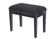 ה- PJ018BK הוא כסא פסנתר מתכוונן העשוי מעץ מוצק בצבע שחור מבריק עם ריפוד קטיפה בעיצוב יוקרתי.
