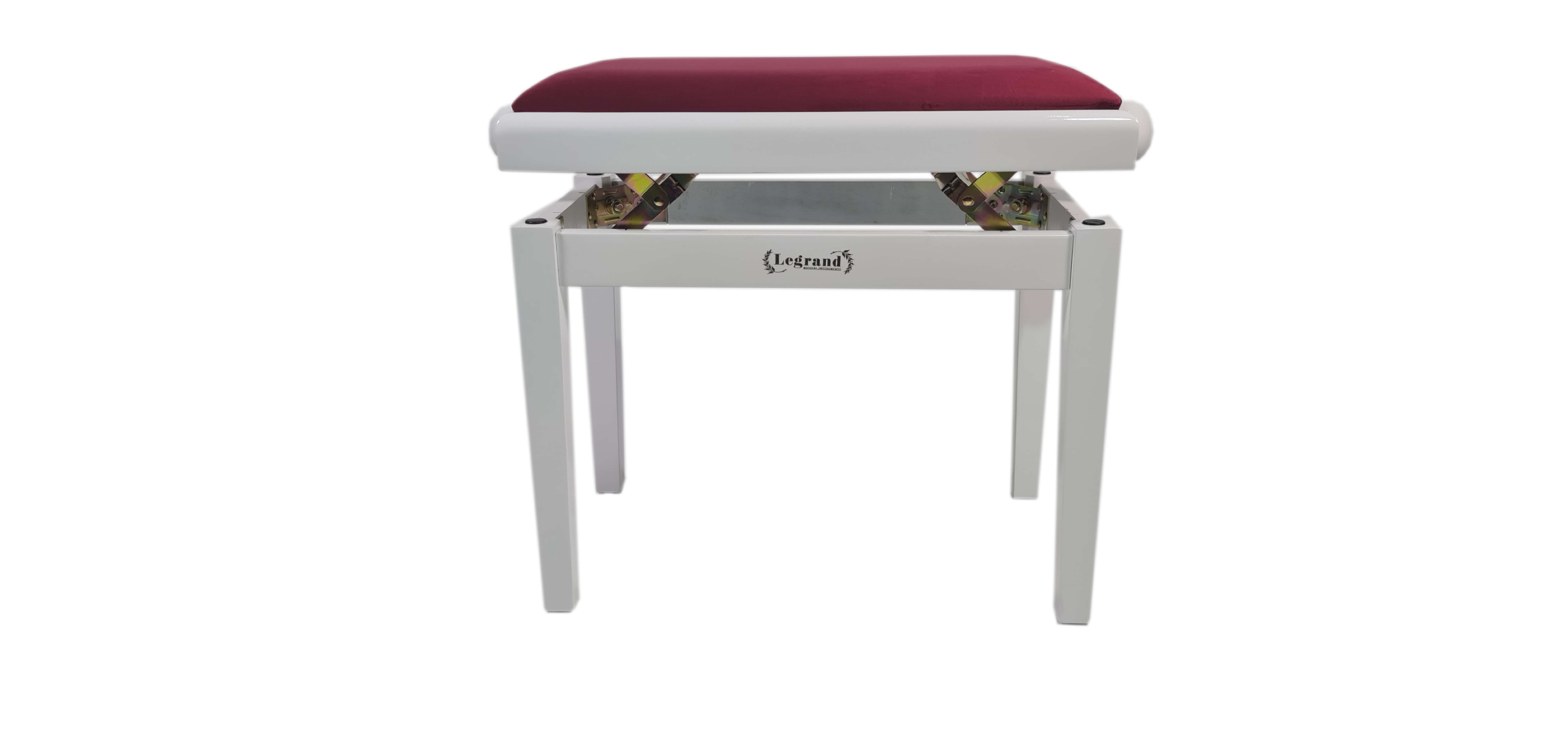 כסא פסנתר מתכוונן בצבע לבן עם טופ קטיפה בצבע אדום כהה PB18 מבית Legrand