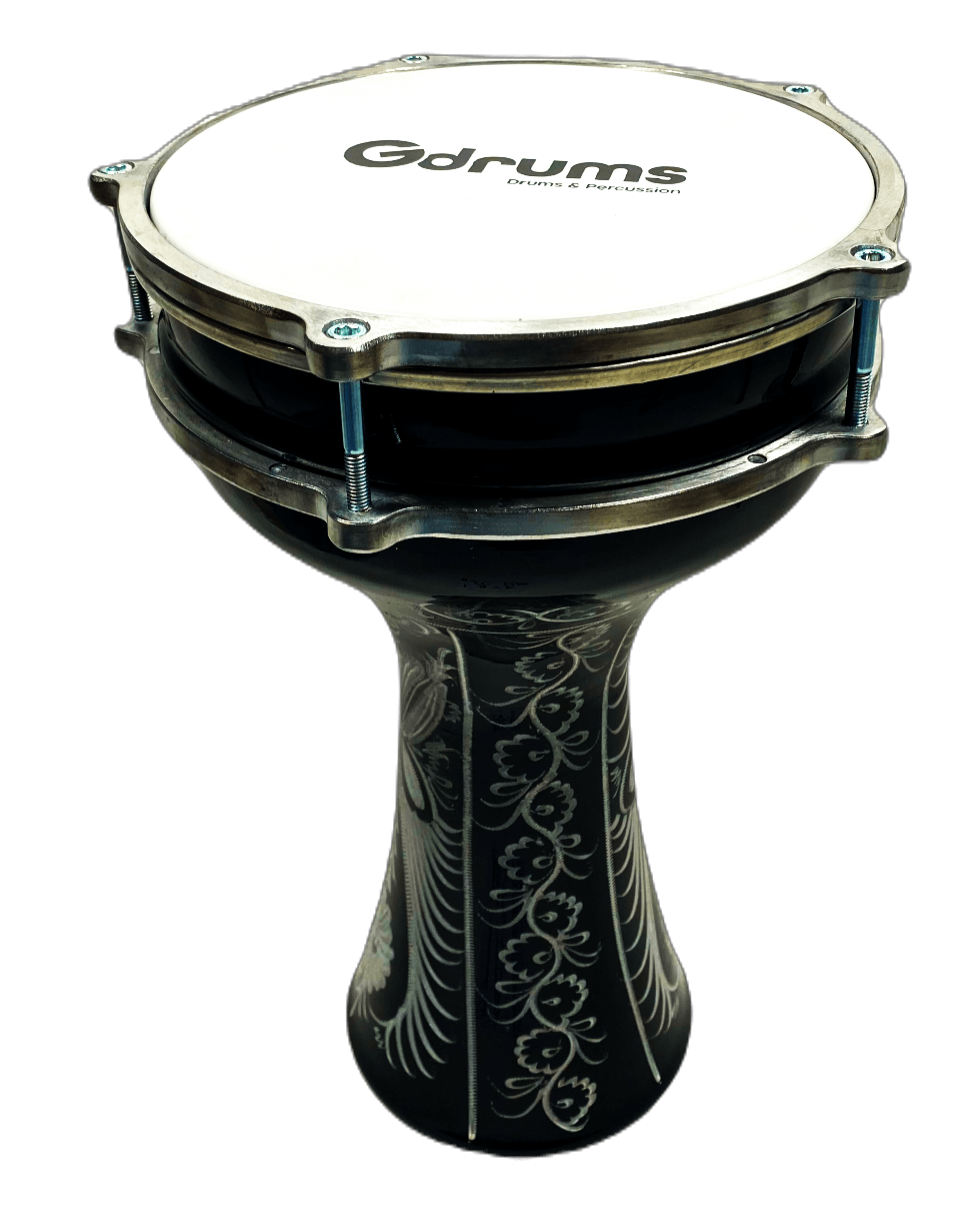 דרבוקה טורקית אלומיניום עם עיטורים מדיום סדרה 15 בצבע שחור TA-GE15 מבית Gdrums