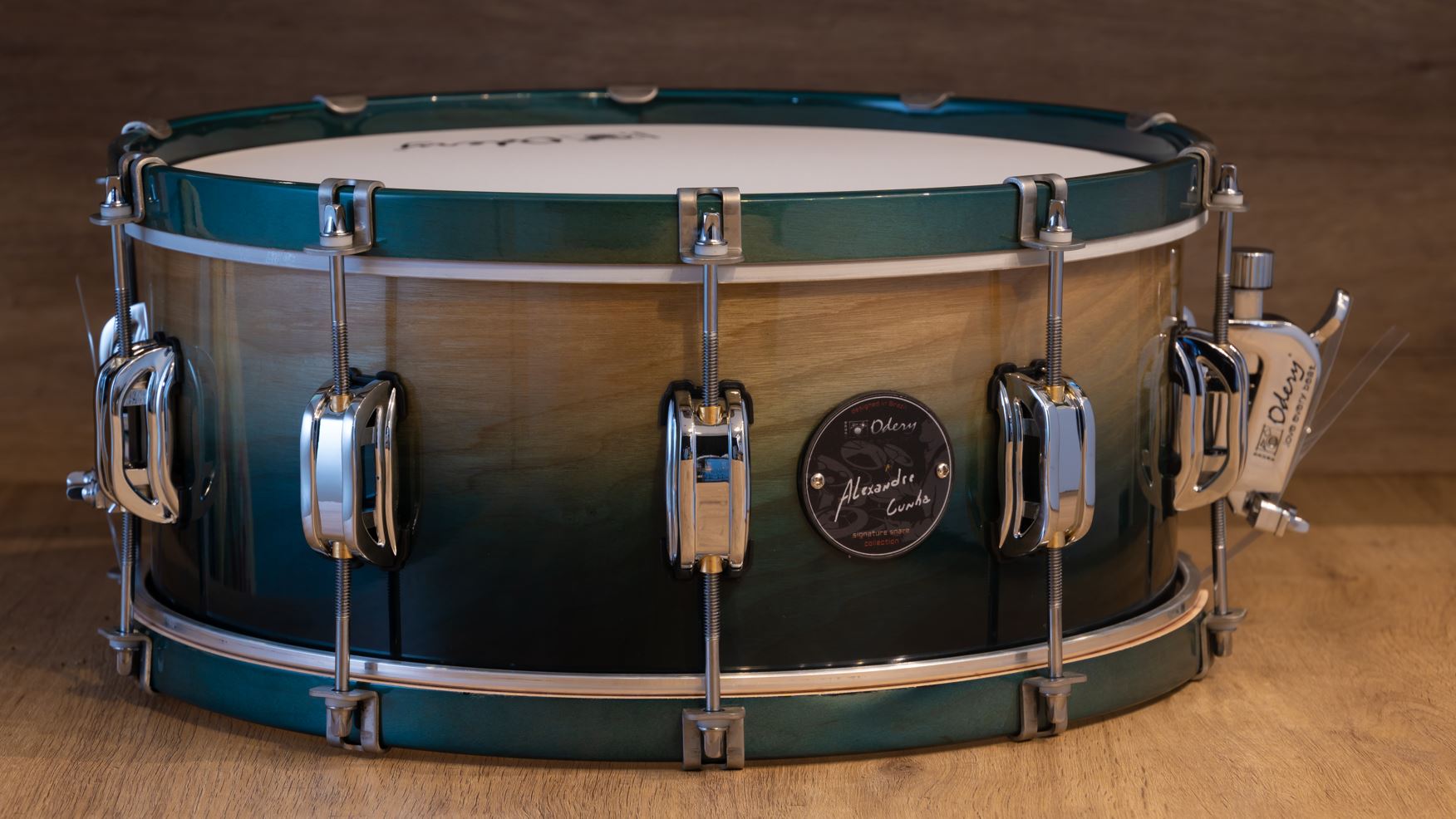 תוף סנר עם חתימה SIG-1406 מסדרת Alex Cunha series בצבע ירוק עם גוונים בגודל 14x06 אינץ' מבית Odery-(Brazil) ODERY(Brazil)