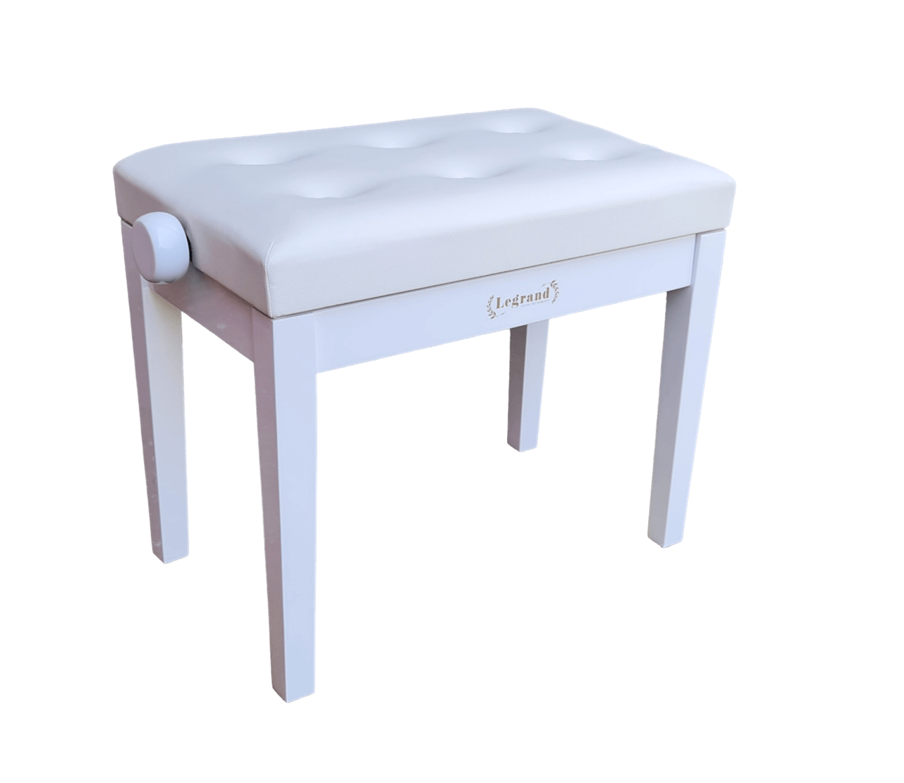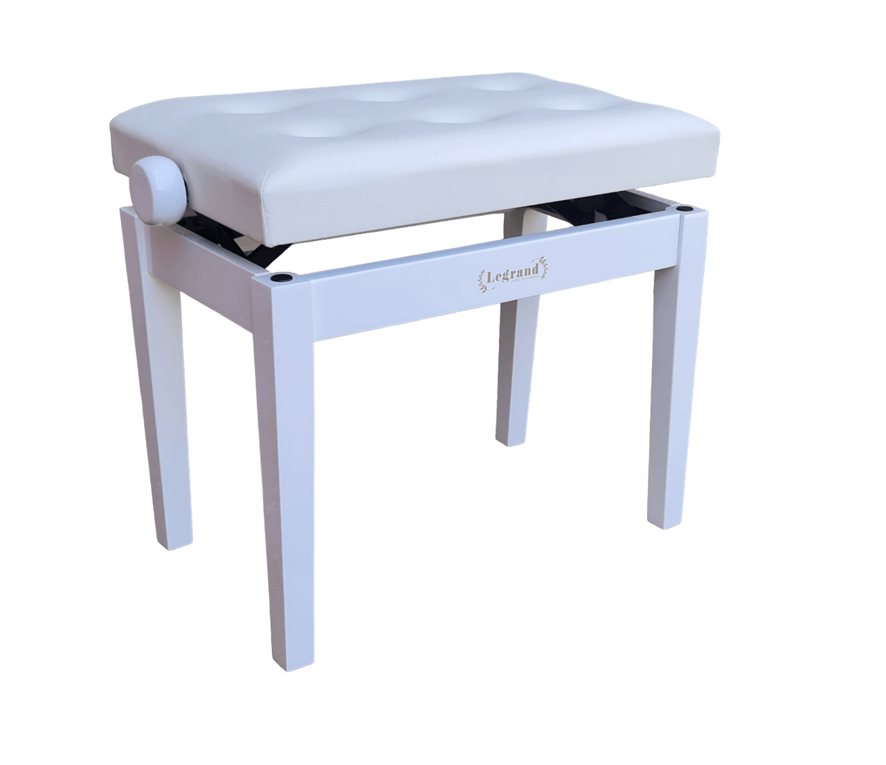 כסא פסנתר מתכוונן עם קפיטונאז’ בצבע לבן מבריק PB25 מבית Legrand