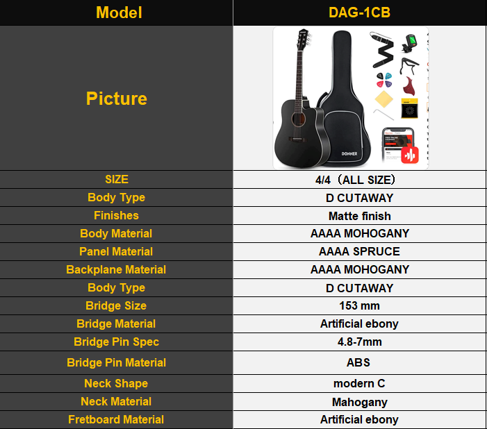 *ערכת גיטרה אקוסטית*- גיטרה אקוסטית DAG1CB בצבע שחור + תיק + קאפו + רצועה + מפרטים ועוד | מהבאנדלים המשתלמים בישראל מבית DONNER
