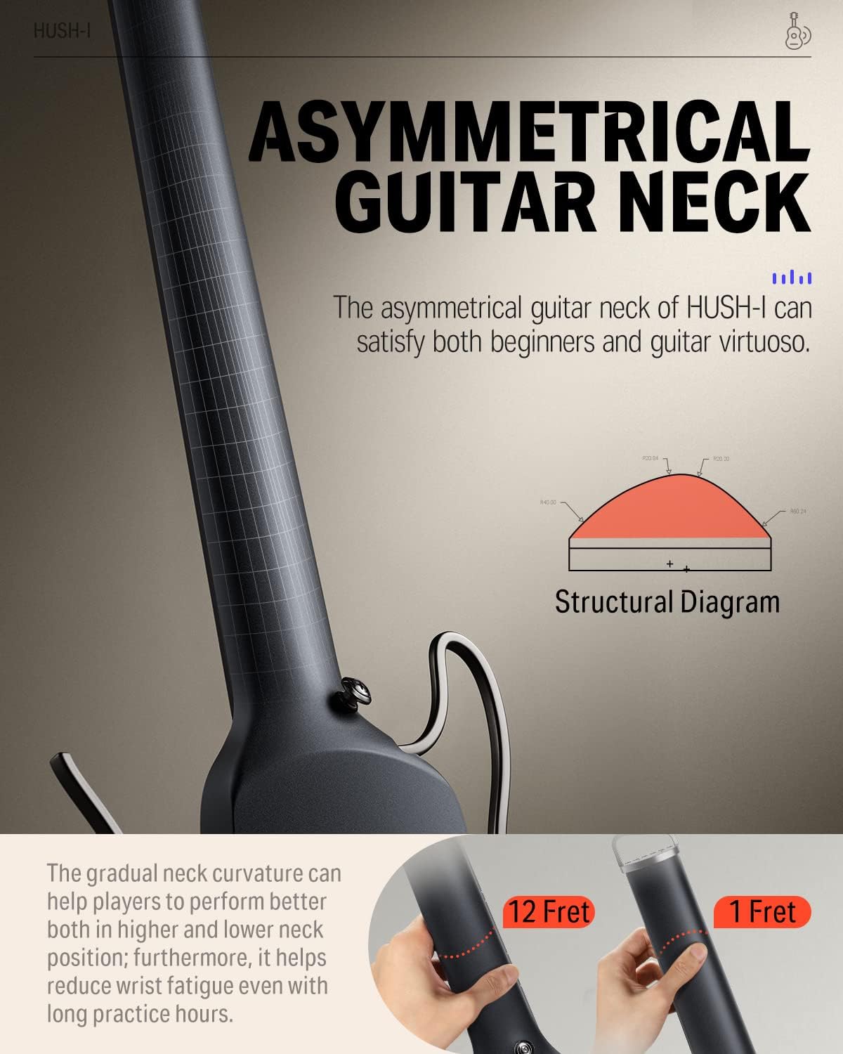 השחקן החדש הגיע לארץ ! קבלו את ה HUSH-I גיטרה שקטה בעיצוב עוצר נשימה שתאפשר לכם לנגן בכל מקום ובכל זמן, אפילו בשעות הקטנות של הלילה מבלי להפריע לאף אחד ומצד שני להרגיש שאתם בחדר חזרות מקצועי, מבית חברת DONNER הבינלאומית. הגיטרה מאפשרת להתחבר אליה באוזניות (מגיע עם הגיטרה) ומספקת לכם סאונד מדהים של גיטרה אקוסטית. הגוף וצוואר הגיטרה עשוי עץ מייפל והסריגים נוחים לנגינה. צוואר הגיטרה א-סימטרי, מה שעוזר לנגנים לבצע ביצועים טובים יותר באיזורים השונים של הצוואר תוך הפחתת עייפות פרק כף היד במהלך אימונים ארוכים.
