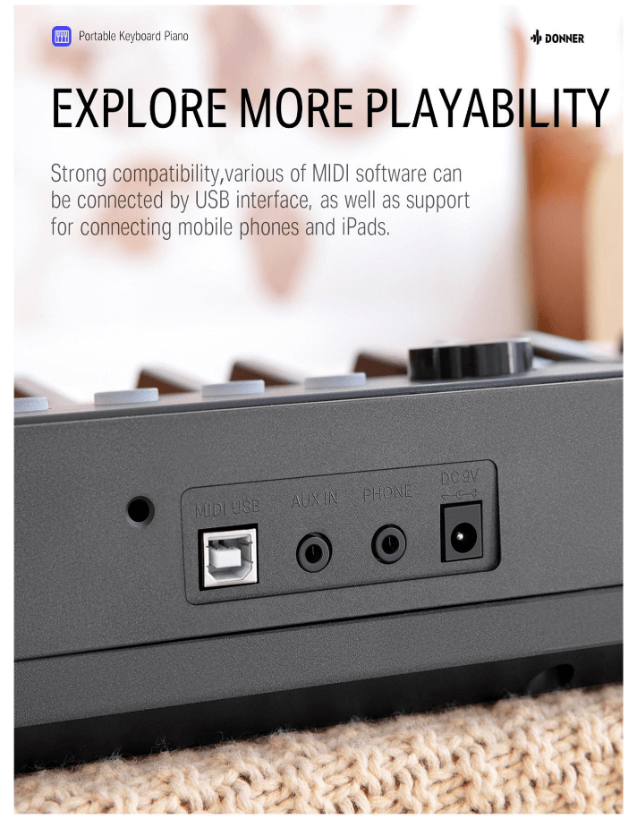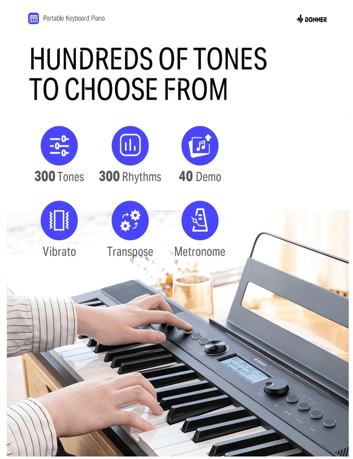 אורגנית ניידת SD-10 הפועלת על ידי בטריות או שנאי, 5 אוקטבות-61 צלילים כולל אלמנט הטאץ’, מגוון מקצבים, צלילים ואלמנטים מגניבים נוספים מבית DONNER העולמית