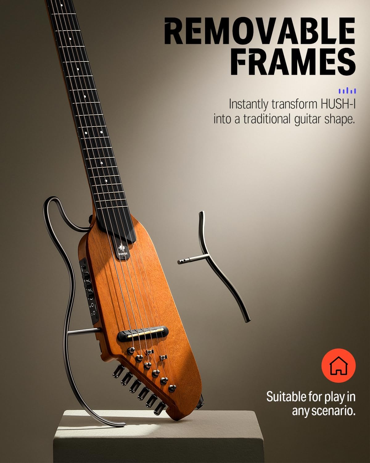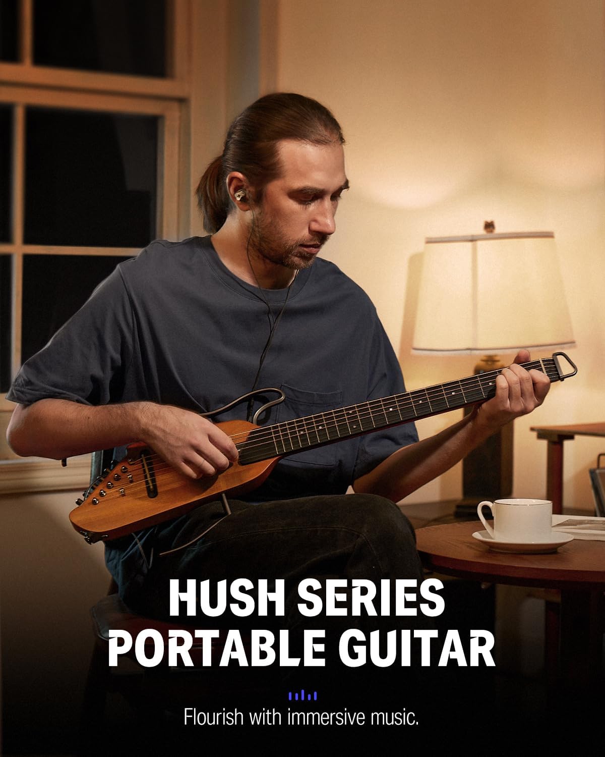 גיטרה שקטה אקוסטית מוגברת EC1781 בעיצוב חדשני HUSH I בצבע מהגוני | גיטרה לטיולים מבית DONNER