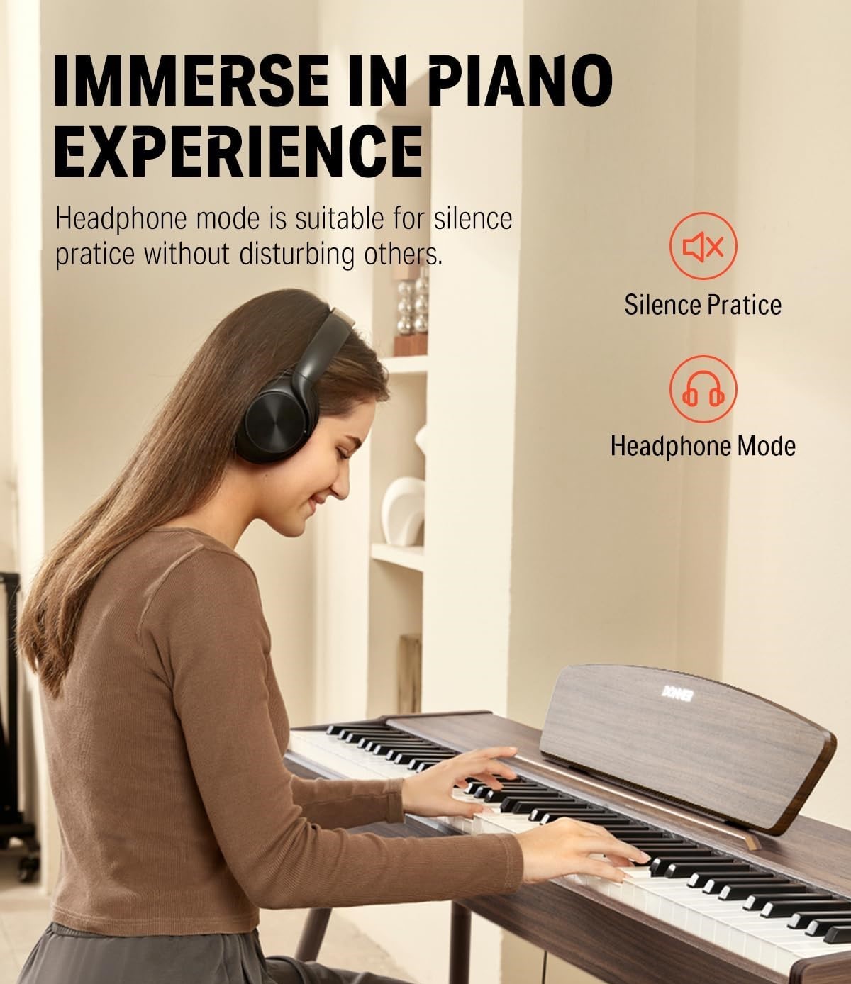 פסנתר רהיט DDP-80 WL בעיצוב עוצר נשימה בסגנון וינטאג’ ועיצוב רטרו עם מקלדת מלאה ומנגנון פטישים מבית DONNER