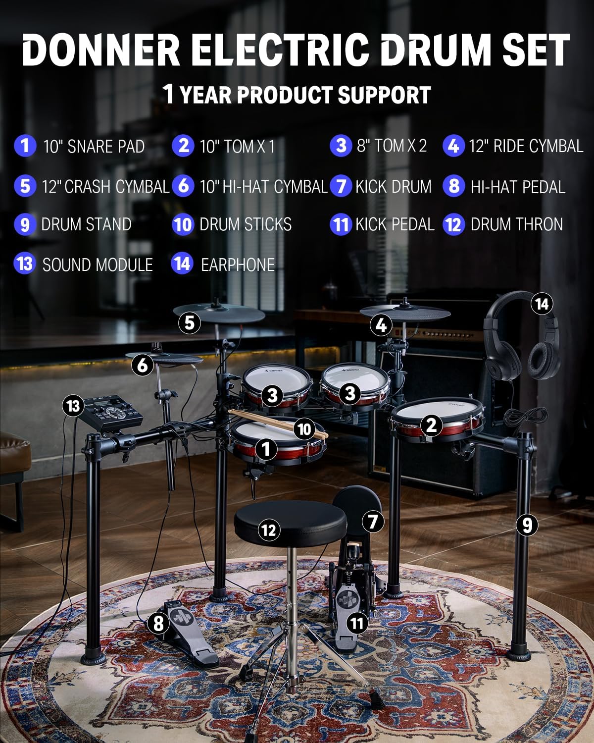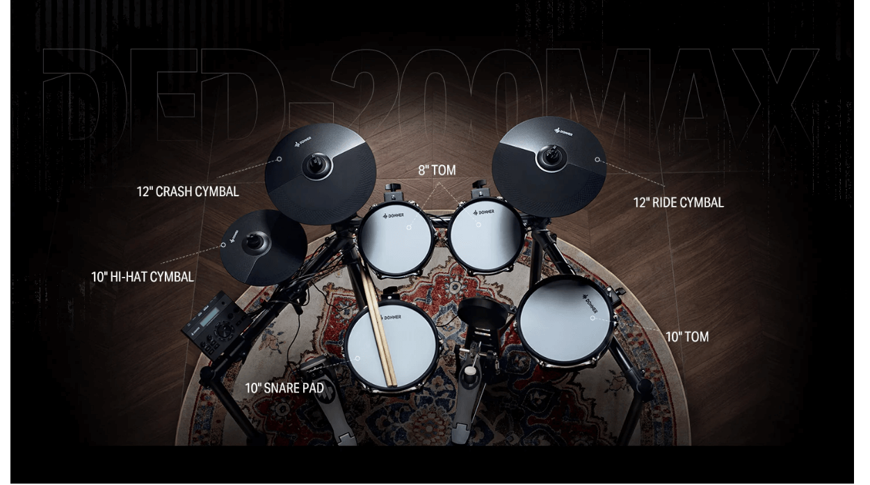 חבילת מערכת תופים אלקטרונית DED-200 MAX + כסא ואוזניות מבית DONNER