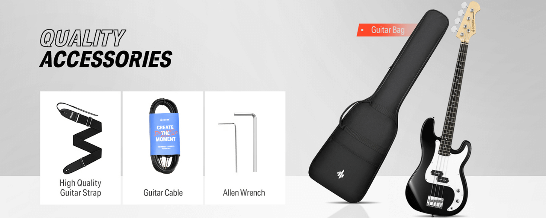 באנדל מטריף לגיטרה בס DPB-510 מבית דונר הבינלאומית שעושה הדים גדולים בעולם ! הבאנדל מגיע עם תיק + חגורה + כבל + שיעורי נגינה אונליין ! DPB-510 EC1228