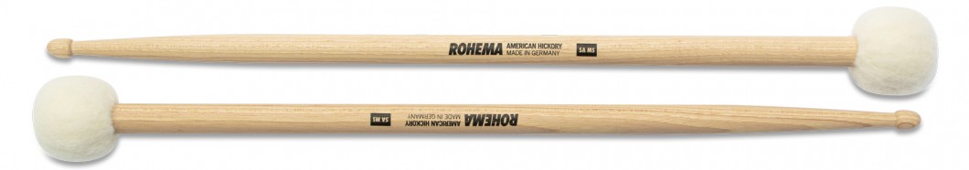 Timpani mallet meets classic 5A model. The ROHEMA 5A MS has a soft mallet head with a core made of cork mounted on a Classic 5A drumstick model. The hand-sewn merino felts ensure that the cymbal is struck almost noiselessly, and toms sound soft and warm.