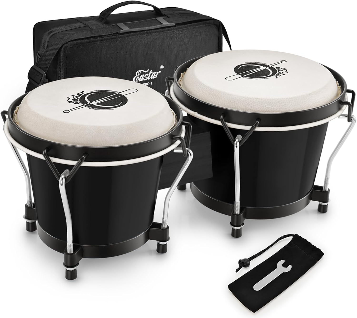 זוג בונגסים "6 "7 בצבע שחור + תיק נשיאה Bongo Drums EBO1 מבית EASTAR מחיר 285 ₪
