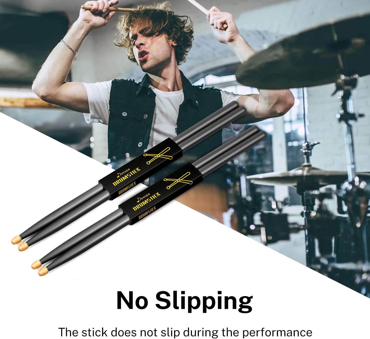 מארז 2 זוגות מקלות תופים EC1144 מייפל 5A + מנשא 5A Drumsticks Classic Maple Wood בצבע שחור מבית DONNER