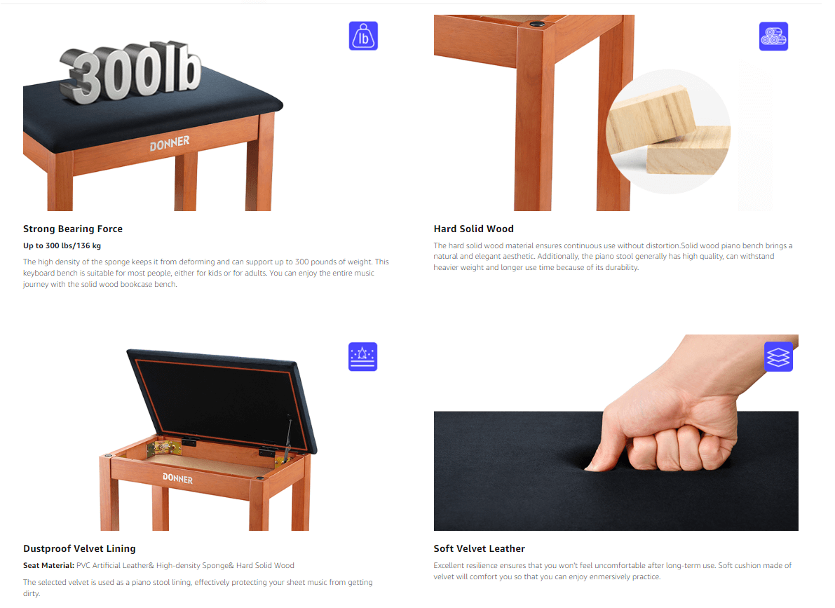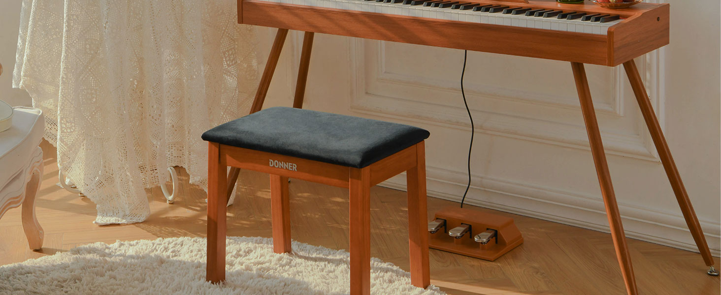 כסא פסנתר DKB10 בצבע חום בהיר EC6749 עם מושב קטיפה כולל תא איחסון מבית DONNER