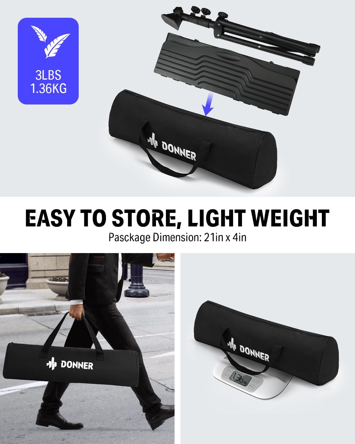 עמוד תווים תזמורתי עם תאורה + תיק נשיאה EC1010 DMS1 מבית DONNER מחיר 239 ₪