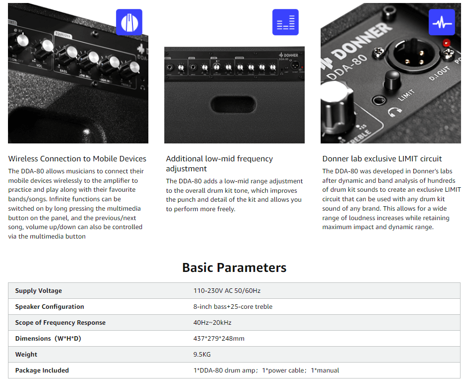 הגיע הזמן להנות ממגבר תופים חזק ועוצמתי בהספק של 80W ! מתאים לאימון ביתי ולחדר חזרות ואפשר גם לחבר אותו להגברה חיצונית בשביל הופעות שדורשות יותר עצמה.