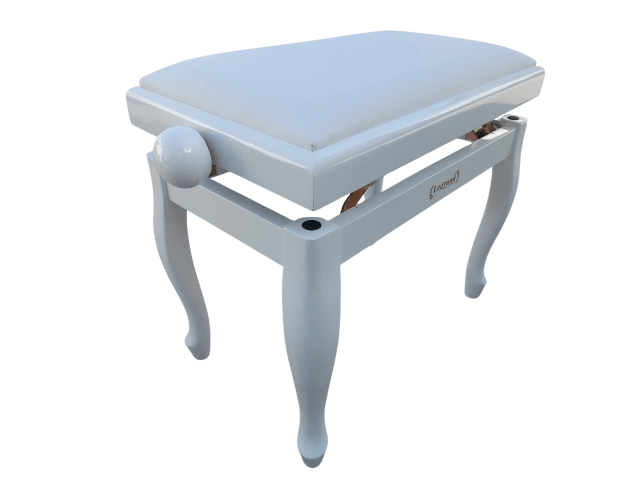 כסא פסנתר מתכוונן עם רגליים מהודרות בצבע לבן וטופ דמוי עור PB18-CL מבית Legrand
