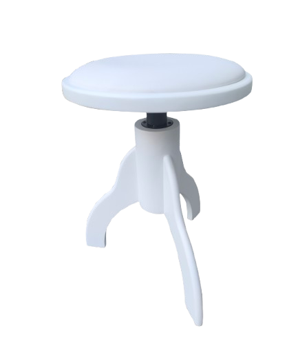 כסא פסנתר עגול מתכוונן PRB-20 בעיצוב ייחודי בצבע לבן מט ומושב דמוי עור בצבע לבן מבית LEGRAND