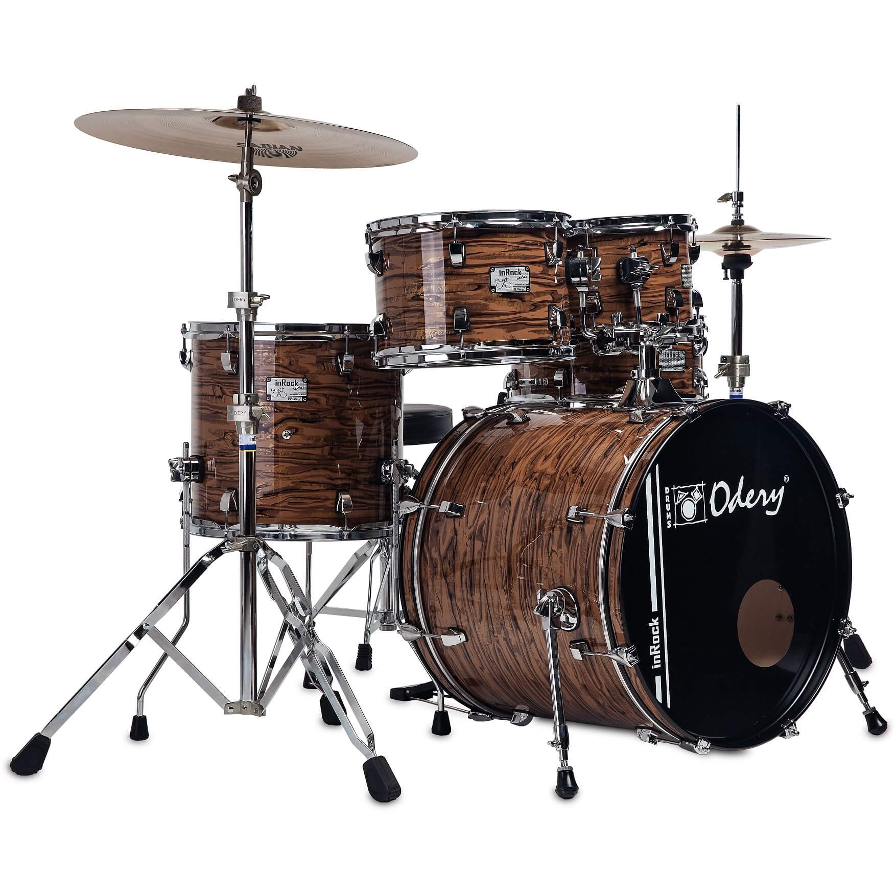 מערכת תופים 5 חלקים + איבזור וכסא 18" סדרת inRock בצבע Gold Tiger מבית Odery-(Brazil) ODERY(Brazil)