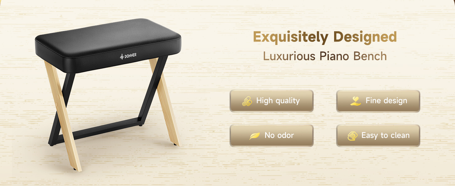 קבלו את הDKB-300 ! כסא פסנתר מהפנט ביופיו וייחודי בעיצובו ! הכסא מגיע עם מושב מרופד ומפנק מה שיאפשר לכם לנגן בנוחות ולאורך זמן מבית DONNER הבינלאומית