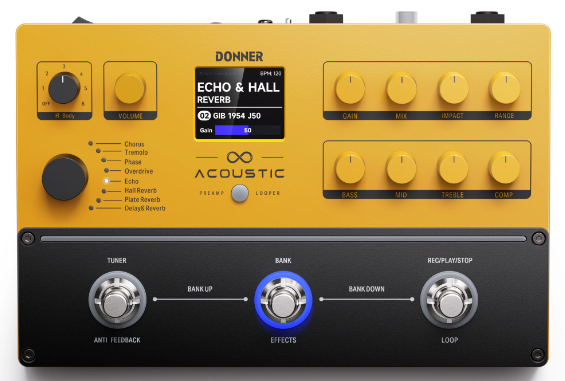 פדל מולטי אפקט שיפתיע אתכם לטובה ! 6 סאונדים של אקוסטית לבחירה + 8 מודים של אפקטים + לופר באורך הקלטה של 8 דקות ! אין ספק שחווית הנגינה שלכם הולכת להשתדרג ובגדול ! מבית DONNER הבינלאומית