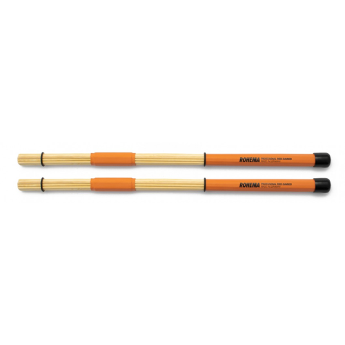 מקלות ה-Professional Bamboo Rods של Rohema הם rods (מקלות מרופדים) מבמבוק שמציעים צליל מרוסן־יותר מהלותים הרגילים, אך עם תחושה חיה ודינמית. הם מיועדים בעיקר למצבים שבהם רוצים צליל עדין יותר — כמו תרגולים בבית, הופעות אקוסטיות או הקלטות — מבלי לוותר על תחושת נגינה טובה ומשוב חזק. הבמבוק מעניק גמישות גבוהה ועמידות טובה, וידית הגומי מוסיפה אחיזה נוחה. יש טבעת גומי מתכווננת שמאפשרת לשלוט על מידת ההתקפה (attack) של ה-rod.