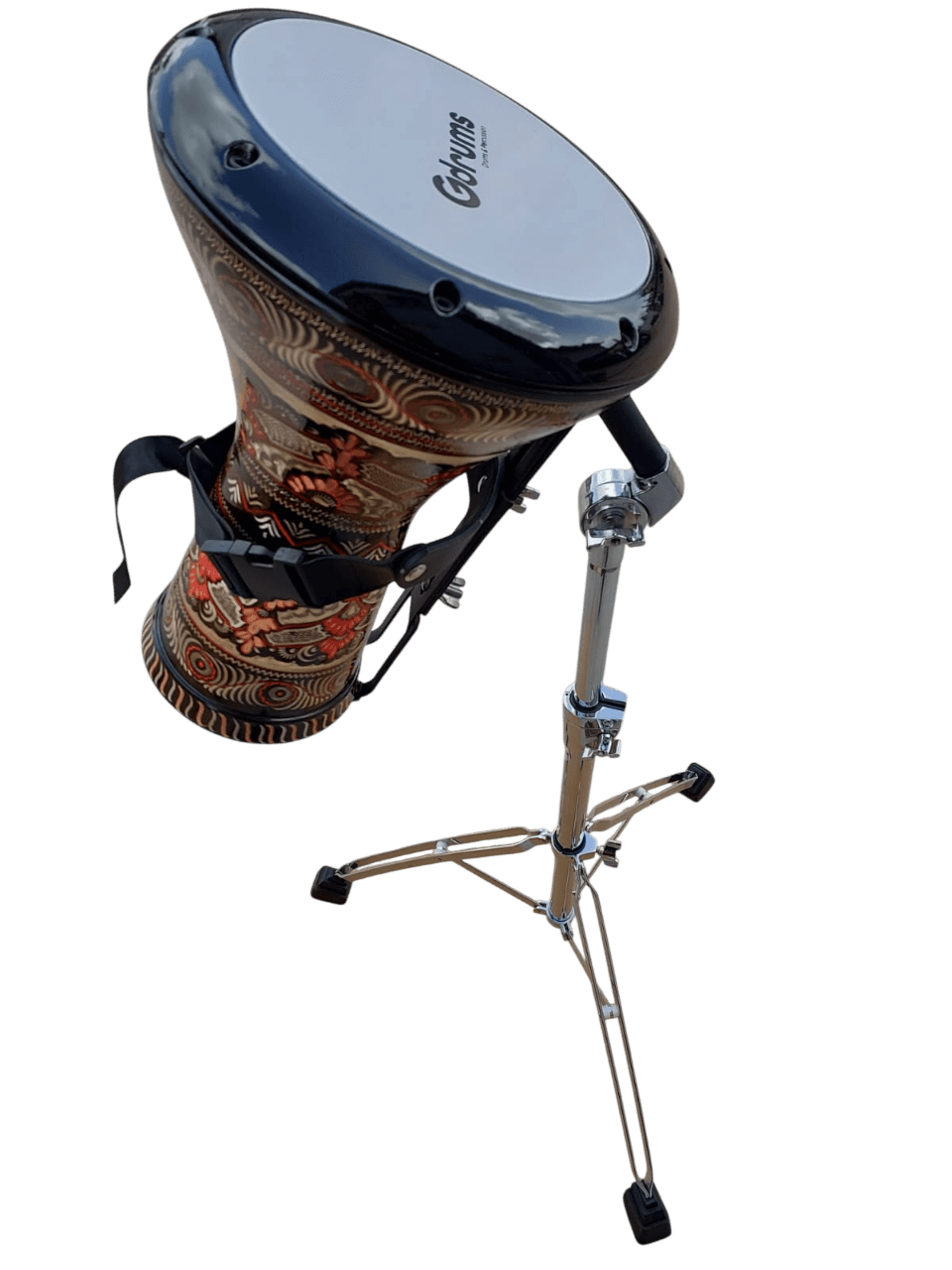 סטנד דרבוקה עמיד ויציב מבית Gdrums ניתן לכוונון גובה וזווית. מתאים לארועים, ולנגן שרוצה לתופף תוך כדי עמידה ולהיות עם ידיים פנויות.
